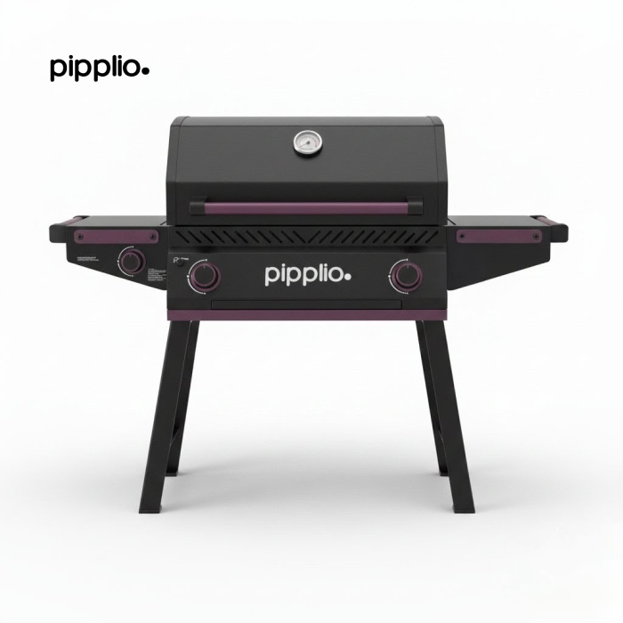 The Pipplio 2-Burner Gas Grill is designed for efficiency and convenience, making it an excellent choice for individuals or small families. It operates on a standard 20 lb. liquid propane (LP) tank (not included) and utilizes two stainless steel burners to deliver a total of approximately 20,000 BTUs of heat, providing consistent and quick cooking performance. The primary cooking grate is often made of porcelain-coated steel wire, which is non-stick and easy to clean. The grill’s lid includes a clear, easy-to-read, integrated temperature gauge for monitoring the internal heat without lifting the lid. Portability is enhanced by a set of large wheels and two side shelves that fold down for compact storage, perfect for limited spaces.